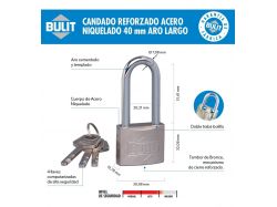 Candado Ref. Acero Niquelado 40 Mm Aro Largo Bulit