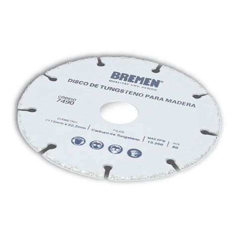 Disco De Tungsteno Para Madera 115mm X 22,2mm Bremen®