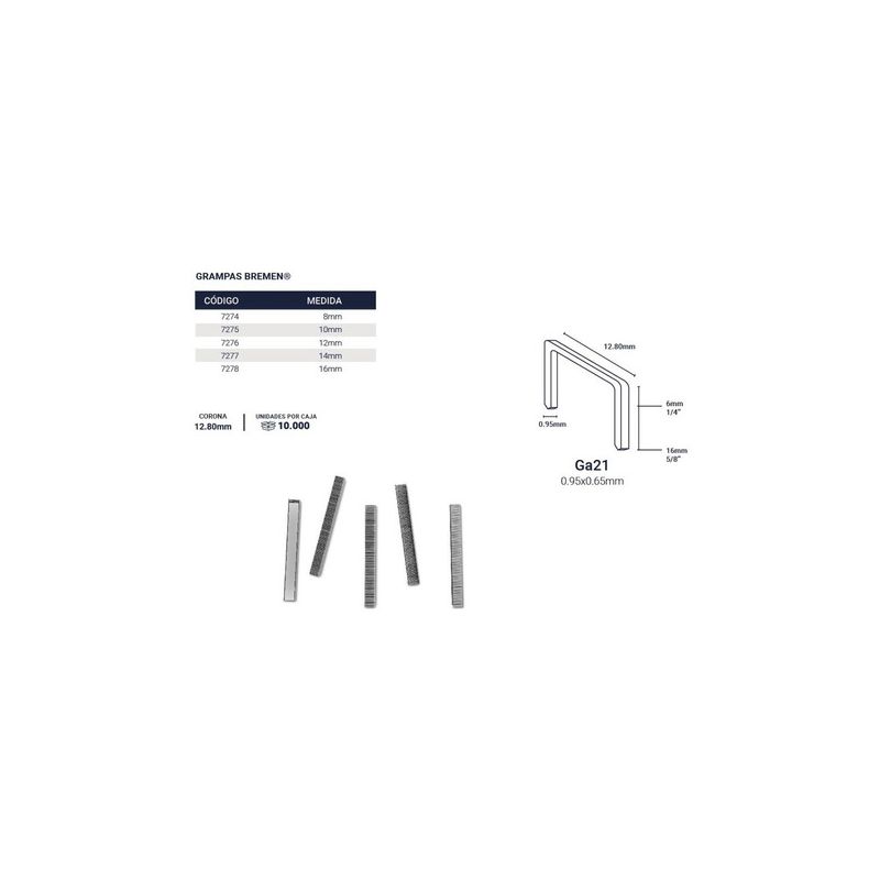 Grampas 8mm [corona 12.80mm] Caja 10.000 Uni Bremen®