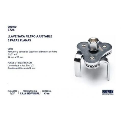 Llave Saca Filtro Ajustable 3 Patas Planas Bremen®