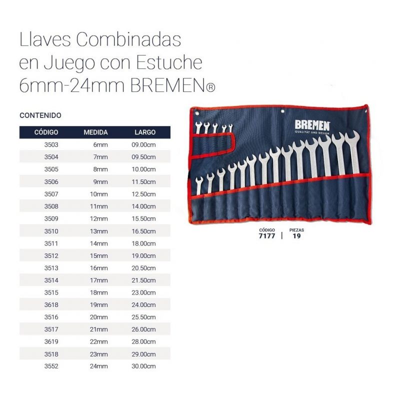 Llaves Combinadas En Jgo C/estuche 6-24mm [19 Llaves] Bremen®