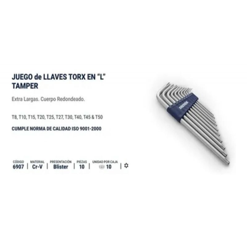 Torx:llaves En "l" Extra Largas X 10 Pz T8/t50