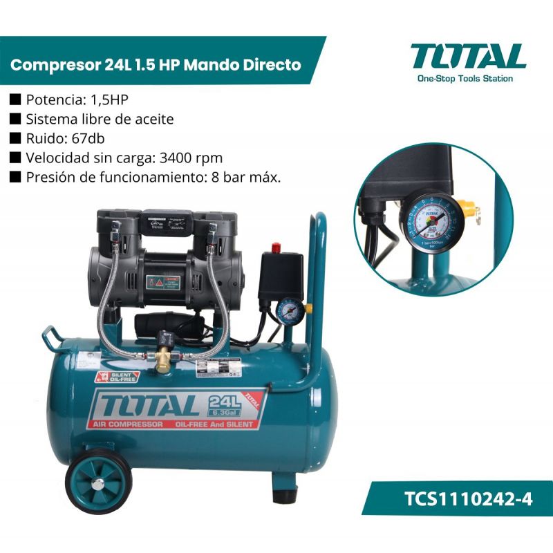 Total Compresor 24l 1.5 Hp Mando Directo (sin Aceite)