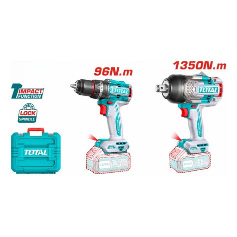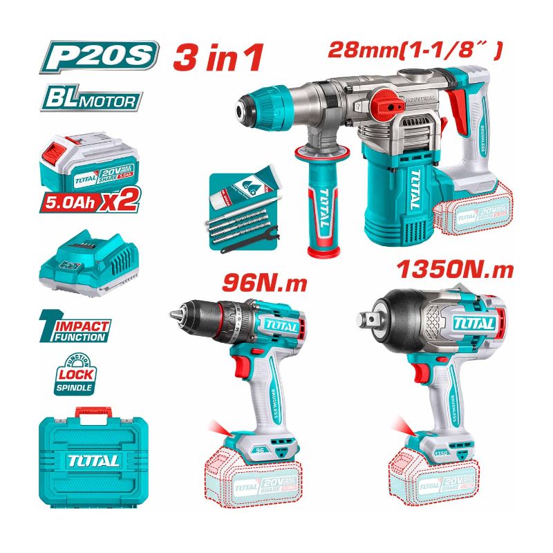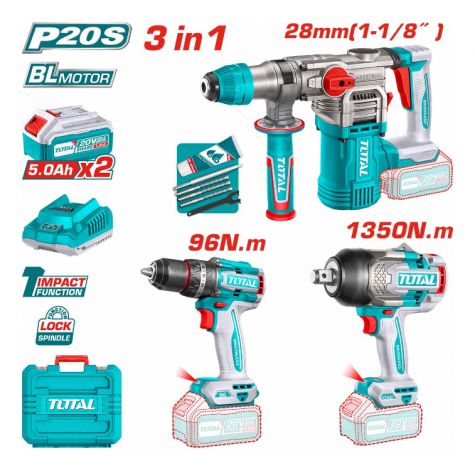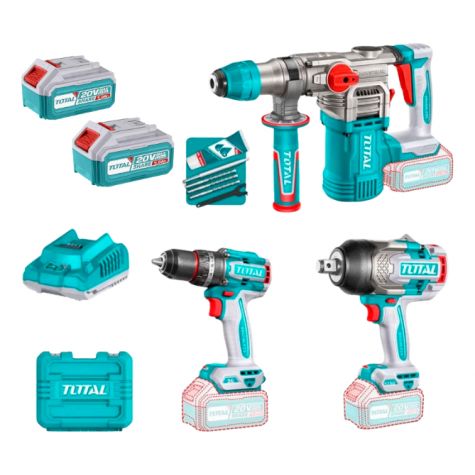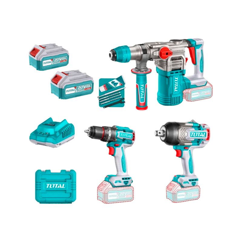 Total Kit Taladro Percutor + Llave De Impacto + Rotomartillo Industrial Total Tosli250281-4