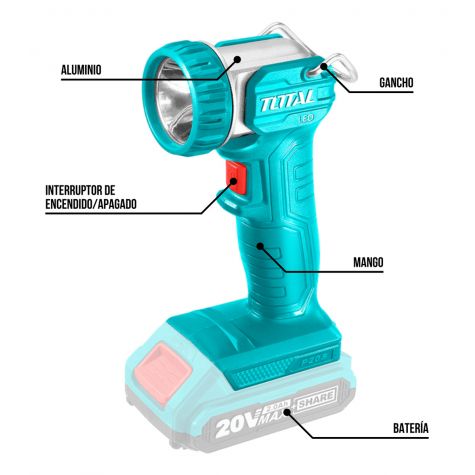 Total Lampara De Trabajo 20v Industrial Twli2038