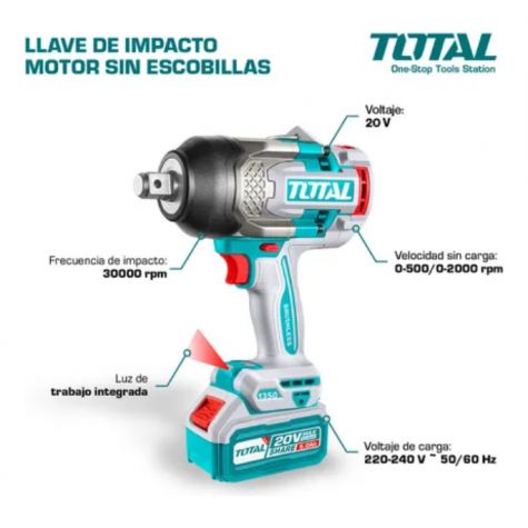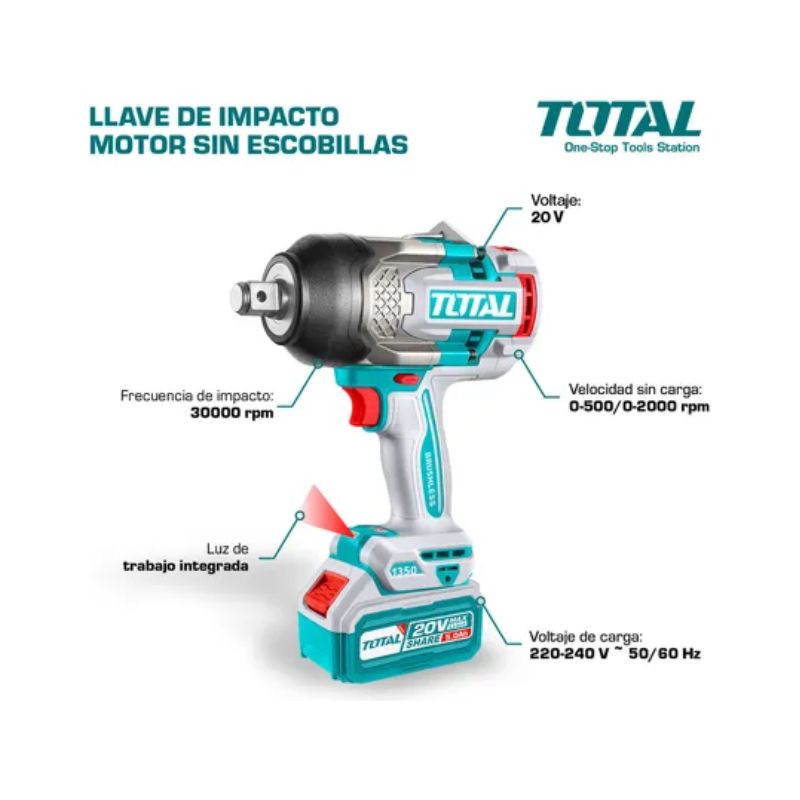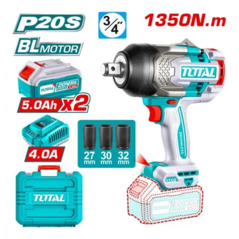 Total Llave De Impacto 20v Bl 1350nm Industrial Tiwli20135-4 (maletin, Cargador Y 2 Baterias 5.0ah)